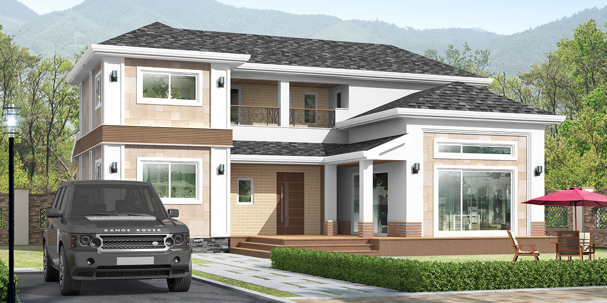 석재타일과 탄화목 사이딩으로 포인트를 더해 웅장한 느낌을 살림