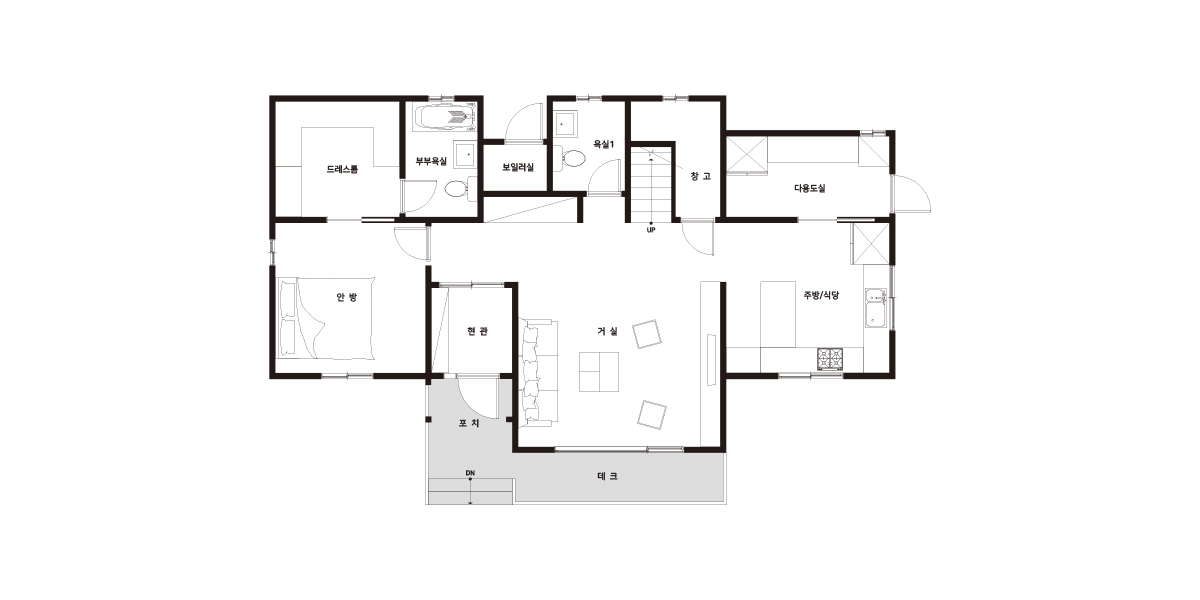 | 1층포치 / 데크 | 2.00㎡ (0.61py) / 10.04㎡ (3.04py) | 창호 | 시스템창호 |