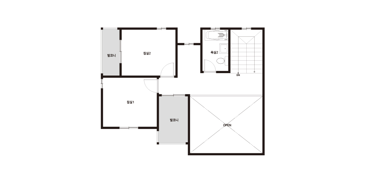 | 2F | 2층 구성: 침실1, 침실2, 욕실2 |