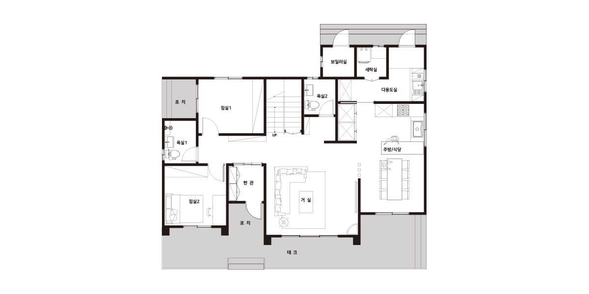 | 1층포치 / 데크 | 3.15㎡ (0.95py) / 20.64㎡ (6.24py) | 창호 | 시스템창호 |