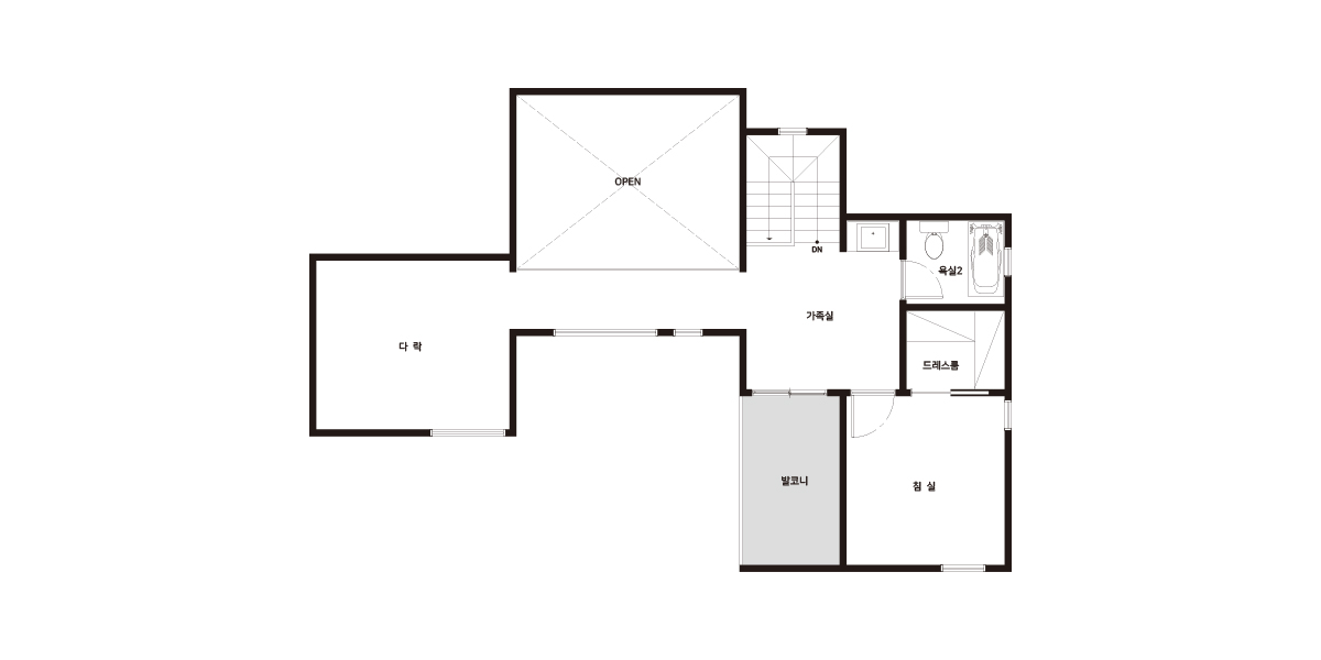 | 2F | 2층 구성: 가족실, 침실1, 드레스룸, 욕실2, 다락 |