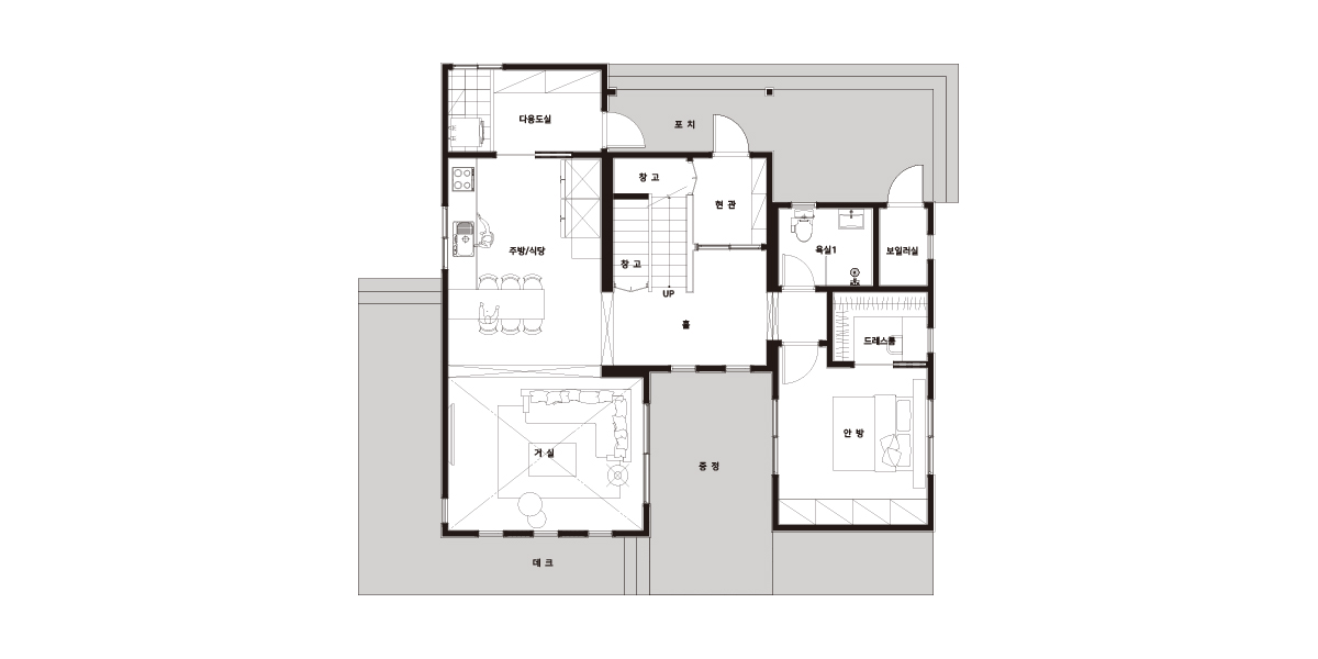 | 1층포치 / 데크 | 9.50㎡ (2.87py) / 52.25㎡ (15.81py) | 창호 | 시스템창호 |