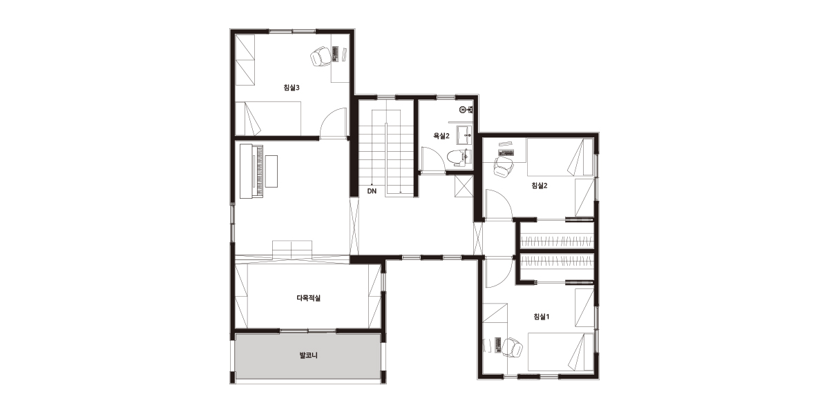 | 2F | 2층 구성: 가족실, 침실1, 침실2, 침실3, 욕실2 |