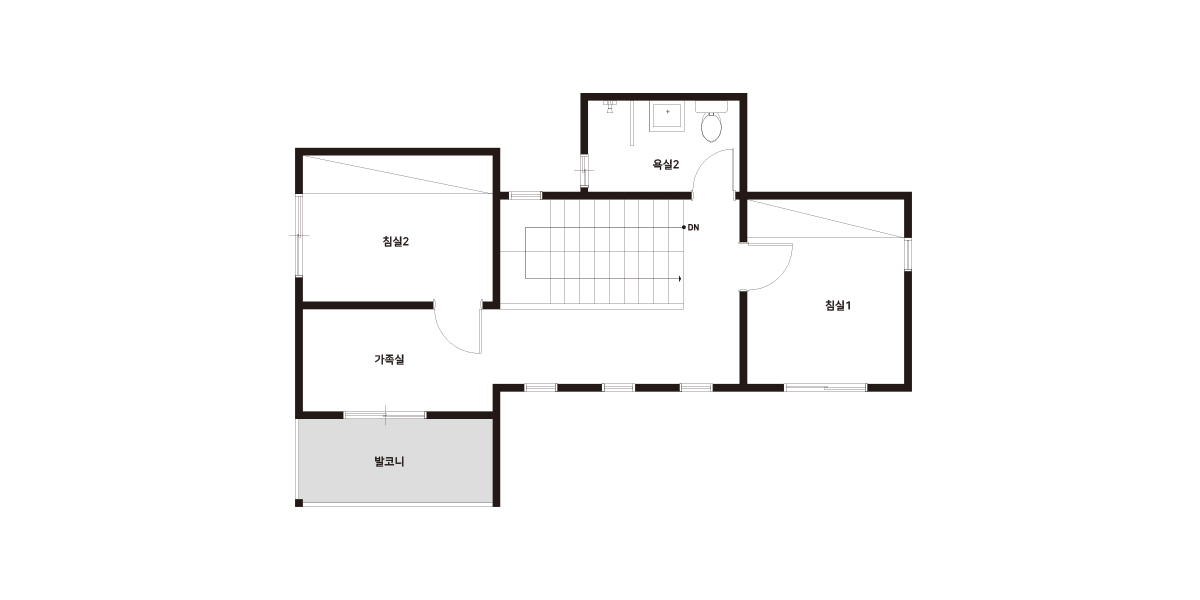| 2F | 2층 구성: 침실1, 침실2, 욕실2, 가족실 |