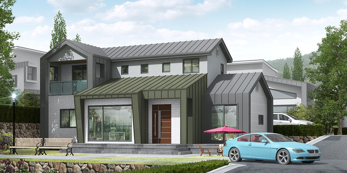 | 2층면적 | 48.75㎡ (14.75py) | 외부마감 | 리얼징크, 세라믹사이딩, 스타코 |