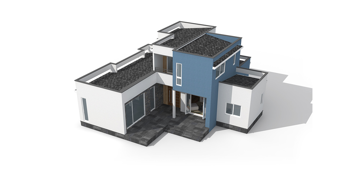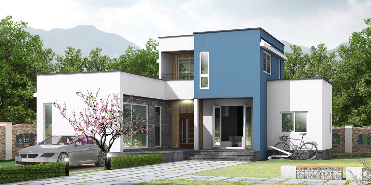 청색 스타코 포인트 마감으로 청량감있는 모던 주택