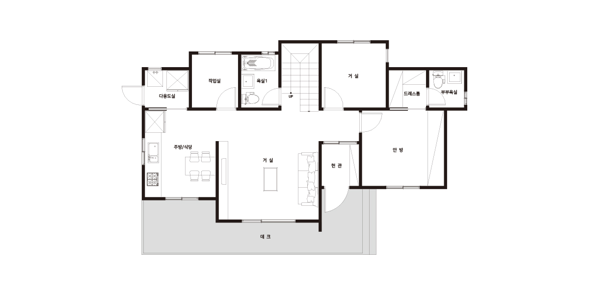 | 1층포치 / 데크 | 2.70㎡ (0.82py) / 17.85㎡ (5.40py) | 창호 | 시스템창호 |