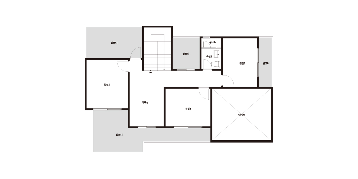 | 2층발코니 / 베란다 | 44.38㎡ (13.42py) | 다락 / 거실오픈 | 12.96㎡ (3.92py) / 1.5층 오픈 |