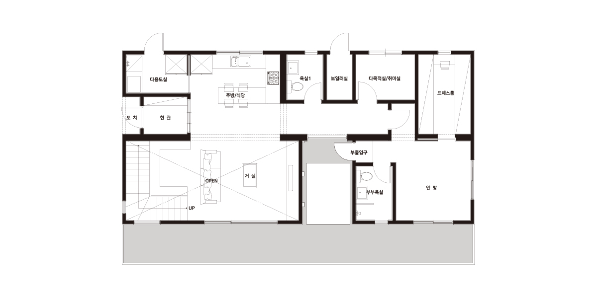 건축주의 라이프스타일에 맞춘 각 실들의 유기적인 구성