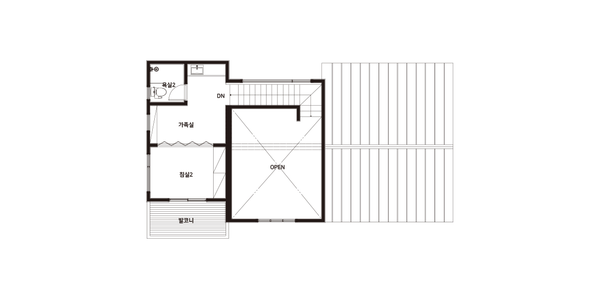 | 2층발코니 / 베란다 | 6.84㎡ (2.07py) | 다락 / 거실오픈 | - / 2층 오픈 |