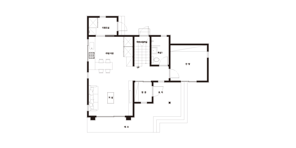 | 1층포치 / 데크 | 3.20㎡ (0.97py) / 27.23㎡ (8.23py) | 창호 | 시스템창호 |