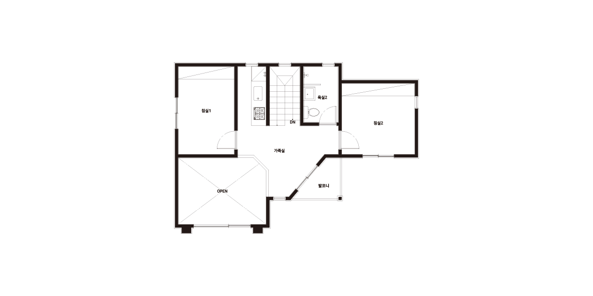 | 2F | 2층 구성: 침실1, 침실2, 욕실2, 가족실, 발코니 |
