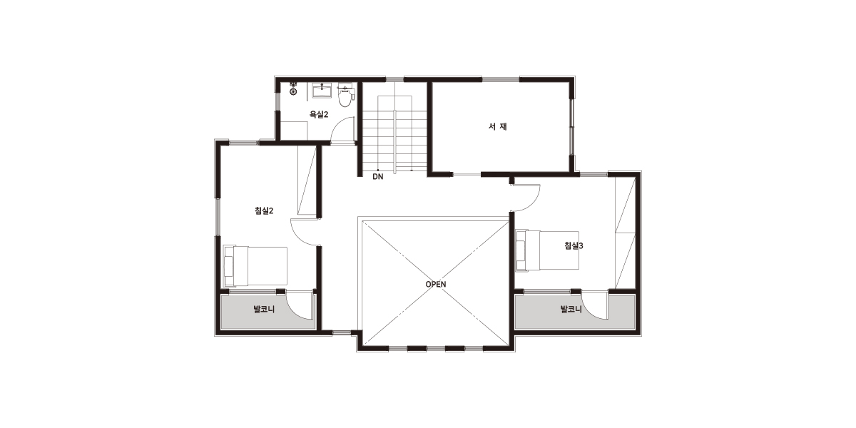 | 2F | 2층 구성: 침실2, 침실3, 서재, 욕실2 |