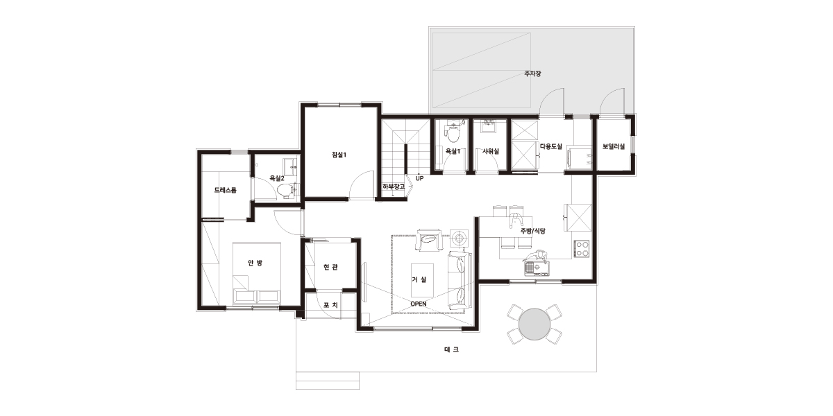| 1층포치 / 데크 | 1.20㎡ (0.36py) /22.39㎡ (6.77py) | 창호 | 시스템창호 |