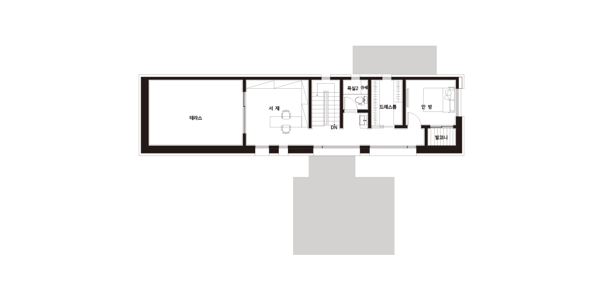 | 2F | 2층 구성: 서재, 욕실2, 안방, 드레스룸, 발코니, 테라스 |