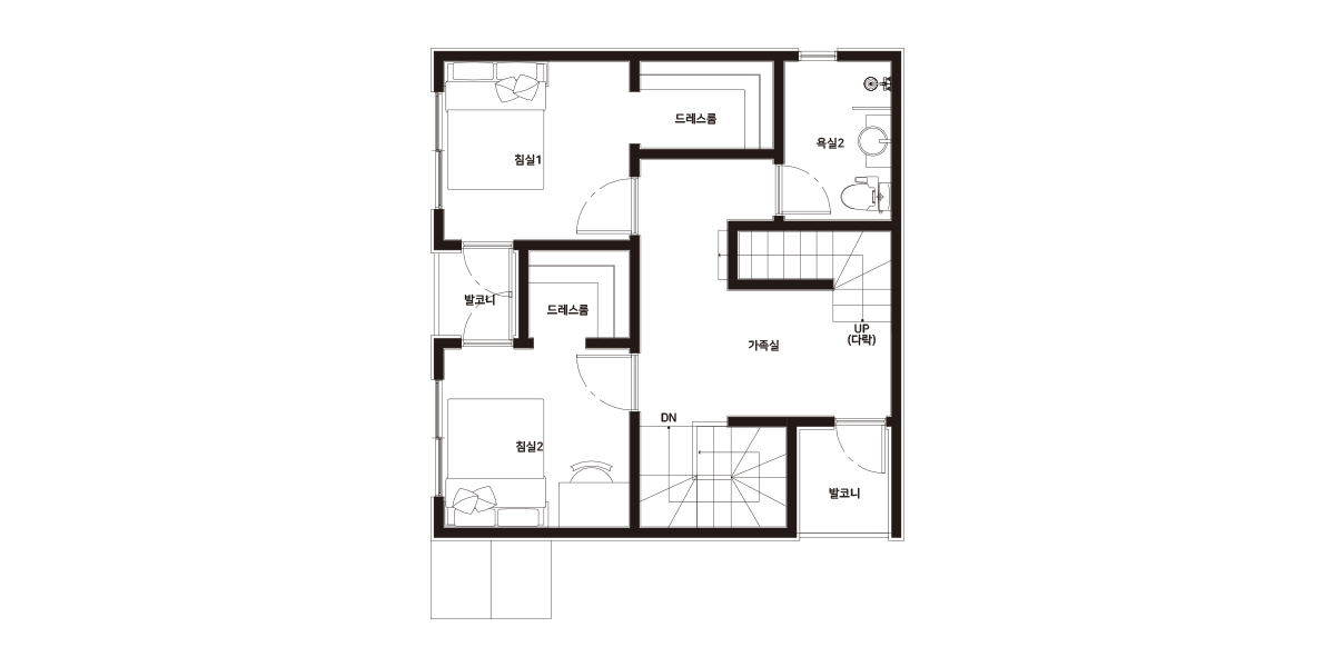 | 2F | 2층 구성: 가족실, 침실2, 침실3, 드레스룸 |