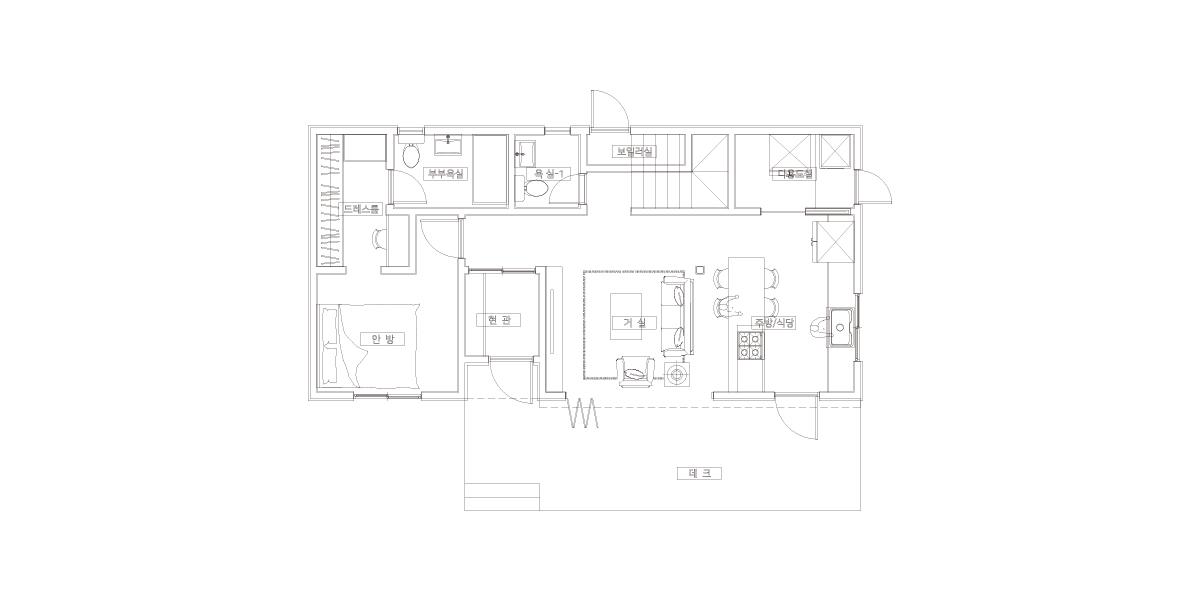 | 1층포치 / 데크 | 2.87㎡ (0.87py) / 27.37㎡ (8.29py) | 창호 | 시스템창호 |