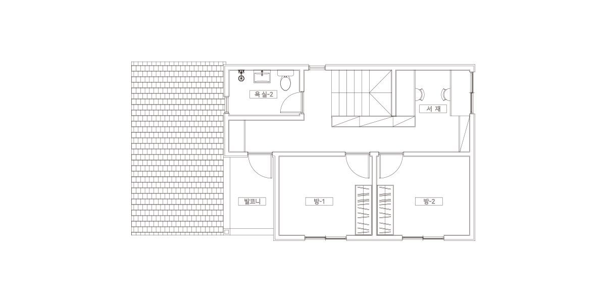 | 2F | 2층 구성: 서재, 욕실2, 발코니, 방1, 방2 |