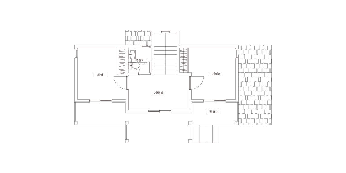 | 2F | 2층 구성: 가족실, 침실1, 침실2, 발코니, 욕실2 |