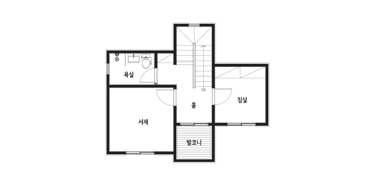 | 2F | 2층 구성: 홀, 침실, 서재, 욕실 |