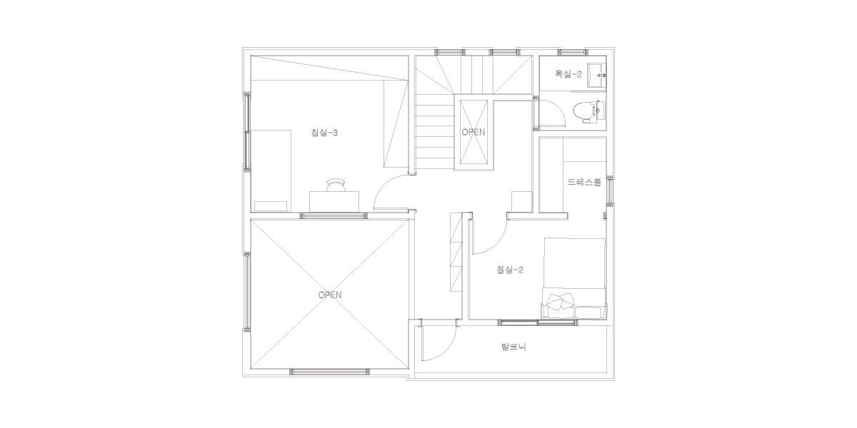 | 2F | 2층 구성: 드레스룸, 욕실2, 침실2, 침실3 |
