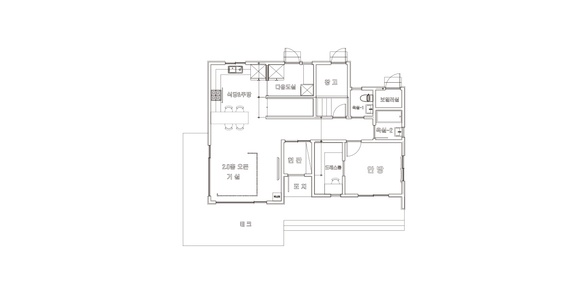 | 1층포치 / 데크 | 5.00㎡ (1.51py) / 34.7㎡ (10.50py) | 창호 | 시스템창호 |